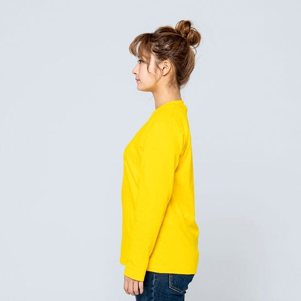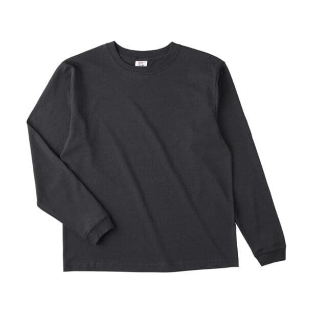 オープンエンド生地のリブ有りロングスリーブTシャツ。