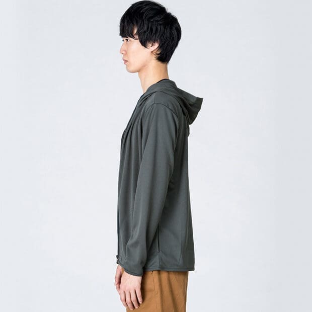 紫外線対策に効果的なドライ素材パーカー 素材:ポリエステル100% 生地の重さ:150g/㎡ 4.4oz 生地の種類:メッシュ