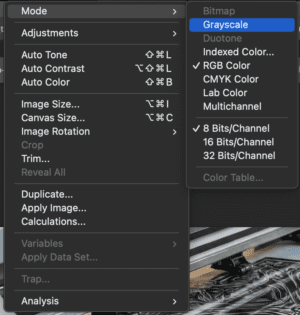 必ずカラーモードはグレースケール「Grayscale」に設定し、
