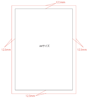それぞれの紙の大きさよりも縦横25mmずつ大きくなっています。